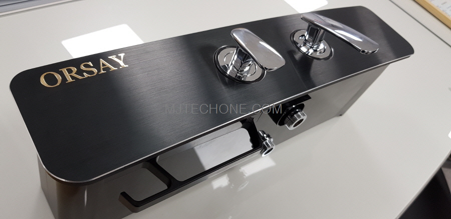 수전제품 알루미늄 데코(헤어라인가공/아노다이징 블랙착색/외곽 다이아 C-CUTING) 브랜드 네이밍(2D도금라벨)적용