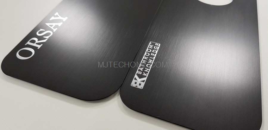 사출베이스 상면 알루미늄 헤어라인 가공 후 블랙 아노다이징 착색